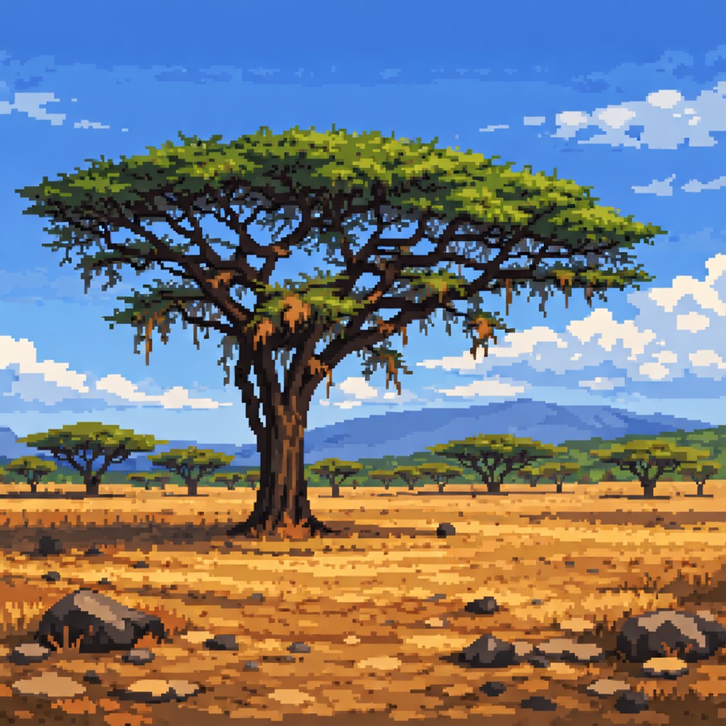 A Web3 3D space where people can be online together, walk around, socialize, and have fun on a shared playground inside a virtual savanna, while observing the lives of animals powered by AI. All elements of the environment are interactive.